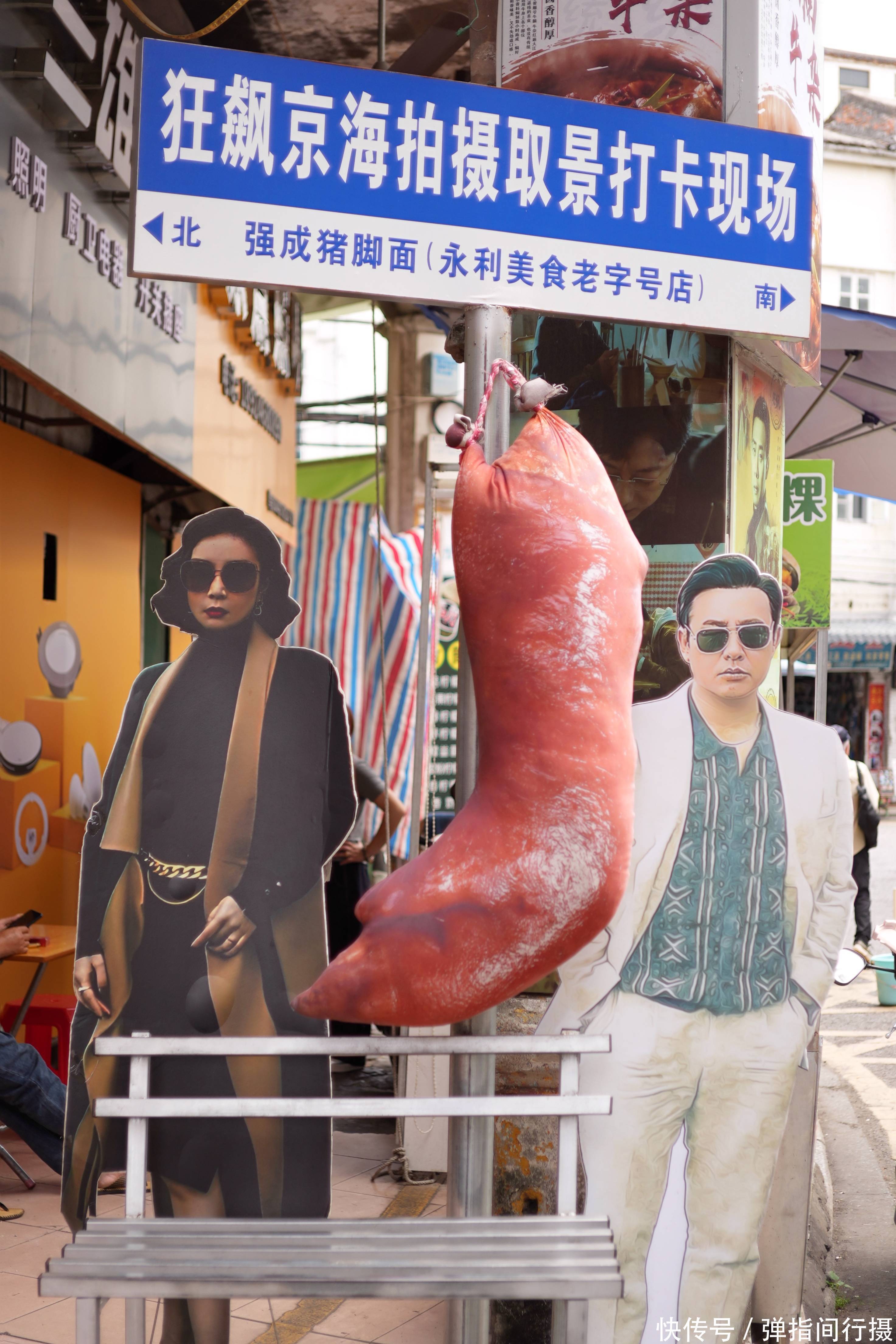 河记肠粉店的蒸笼里,米浆裹着肉香升腾而起,四十大哥铺的烟火气连吴彦祖拍《除暴》时曾经立足。与之酿成显然对比的是左近“狂飙主题茶铺”,年青东说念主举着“咖啡配兵法”的纸杯,在剧照墙前摆出高启强的经典姿势。而蓝本不是当地性情的猪脚面,如今也因这部戏而走红,成为搭客争相回味的风范好意思食。