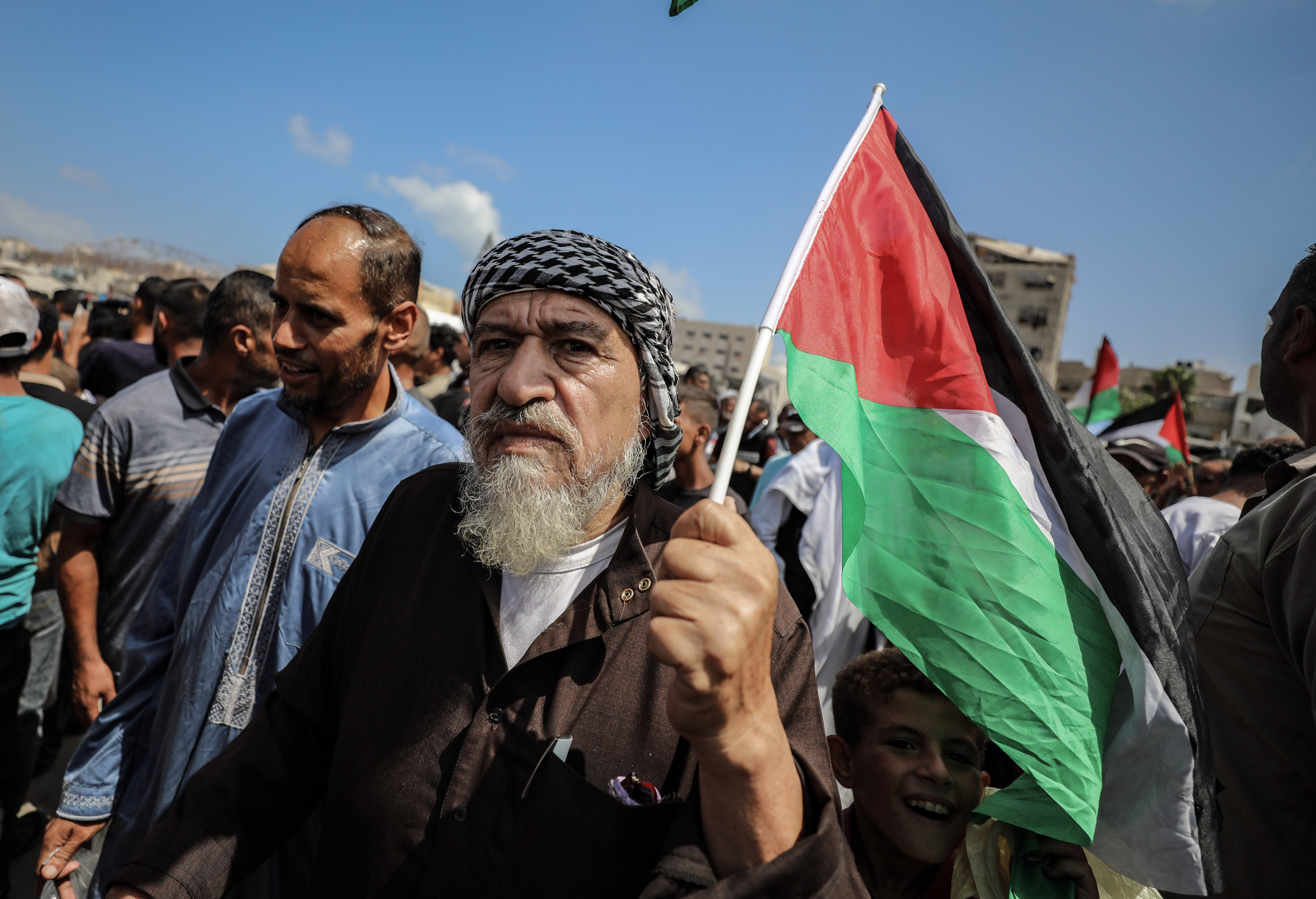 8月21日,数百名巴勒斯坦东说念主联结在加沙城的市中心,条款以色列罢手战争和完毕子民,号令国外社会保护加沙子民。新华社发(里泽克·阿卜杜勒贾瓦德摄)