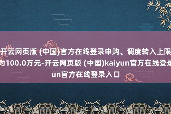 开云网页版 (中国)官方在线登录申购、调度转入上限金额为100.0万元-开云网页版 (中国)kaiyun官方在线登录入口