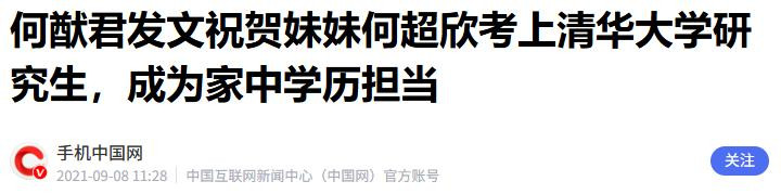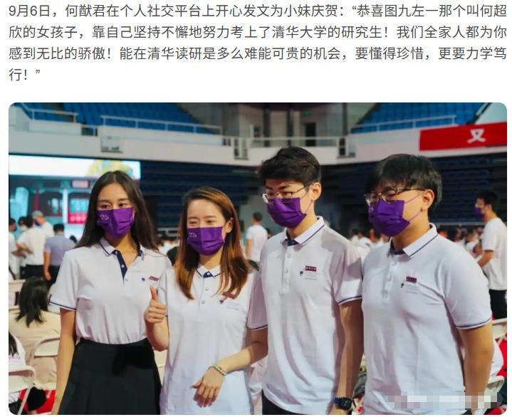 到了2021年,何超欣还考入清华大学攻读硕士。