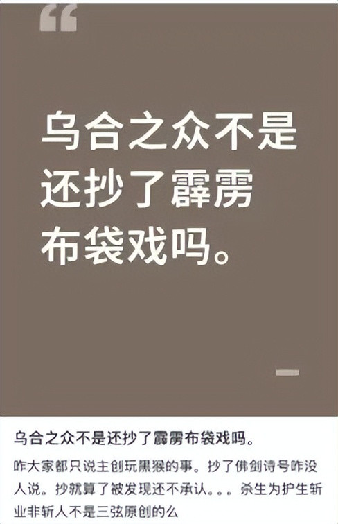 这也引出了一个我相比担忧的问题,将来会不会确切有某款游戏,因为“主创玩过《黑别传:悟空》”这样离谱的罪名,在发售前就胎死腹中?