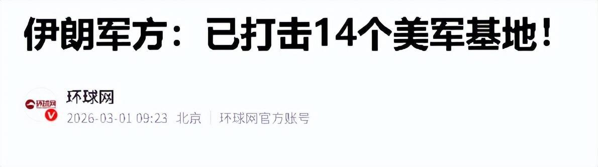 遣散当今,伊朗已打击中东14个好意思军基地,从巴林第五舰队司令部到阿联酋后勤要津,一个齐没放过。