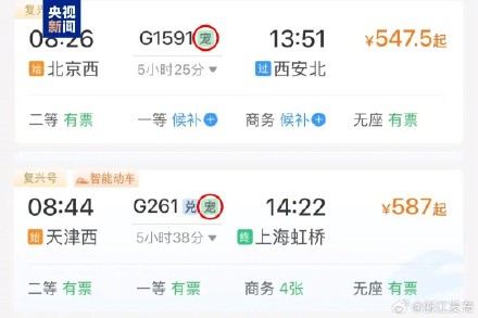 近日,有网友发现,在铁路12306官方购票页面的部分车次信息旁开yun体育网,出现了带有“宠”字的绿色方框标志。“宠”字代表这趟列车不错办理宠物托运工作。当今照旧有50趟列车符号“宠”字。 从宠物托运的热点领会来看,纠合在北京来回上海、杭州、南京和深圳来回长沙等见识。此外,在前期试点东谈主宠同车的基础上,还推出了宠物“单飞”托运工作。单独办理宠物托运的搭客,须在磋商托运日历的前2-5天,通过拨打95572客服热线进行预约,可托运1只宠物。关系办理信息在12306客户端的“高铁宠物托运”界面中进